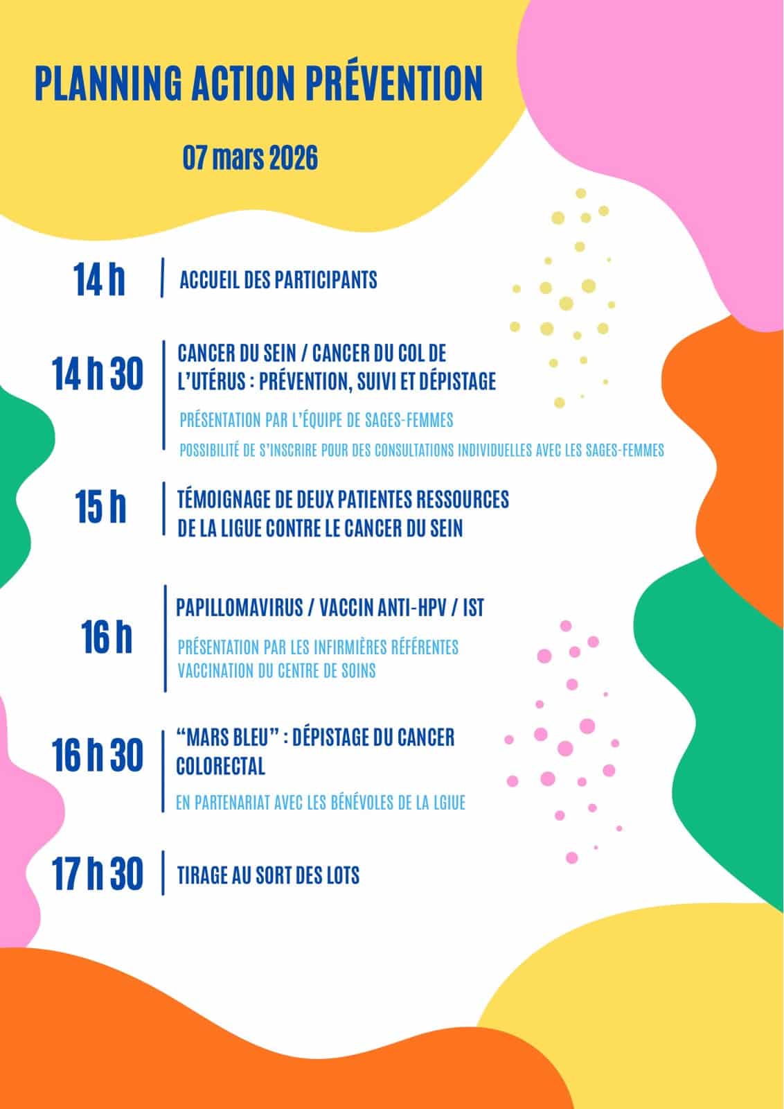 — Information et échange sur le dépistage et la prévention des cancers,
