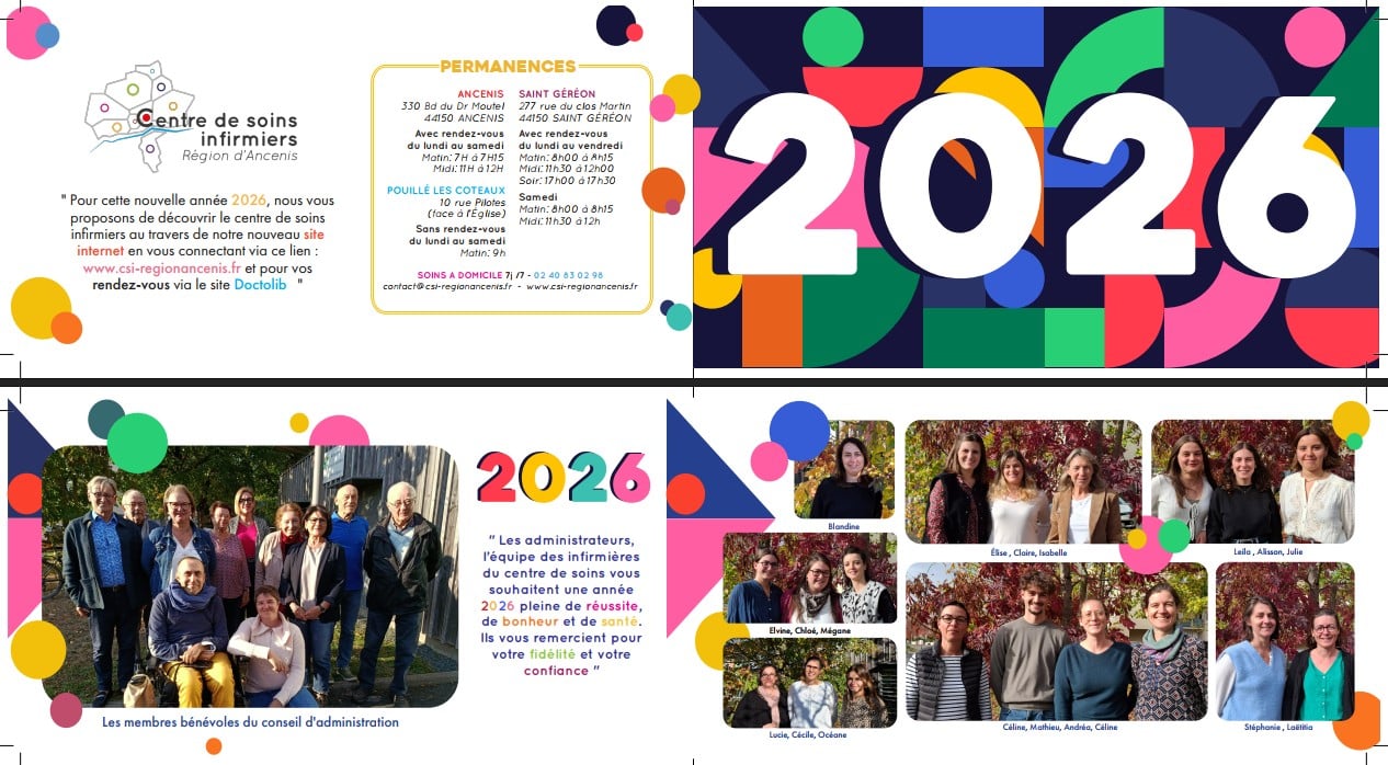 En 2026, le Centre de Soins de la Région d’Ancenis poursuivra sa mission avec la même passion : développer ses activités de prévention, poursuivre le travail permettant la réflexion autour de la qualité, renforcer nos liens avec nos partenaires extérieurs et accueillir de nouvelles idées pour défendre une prise en soins efficace et efficiente.
